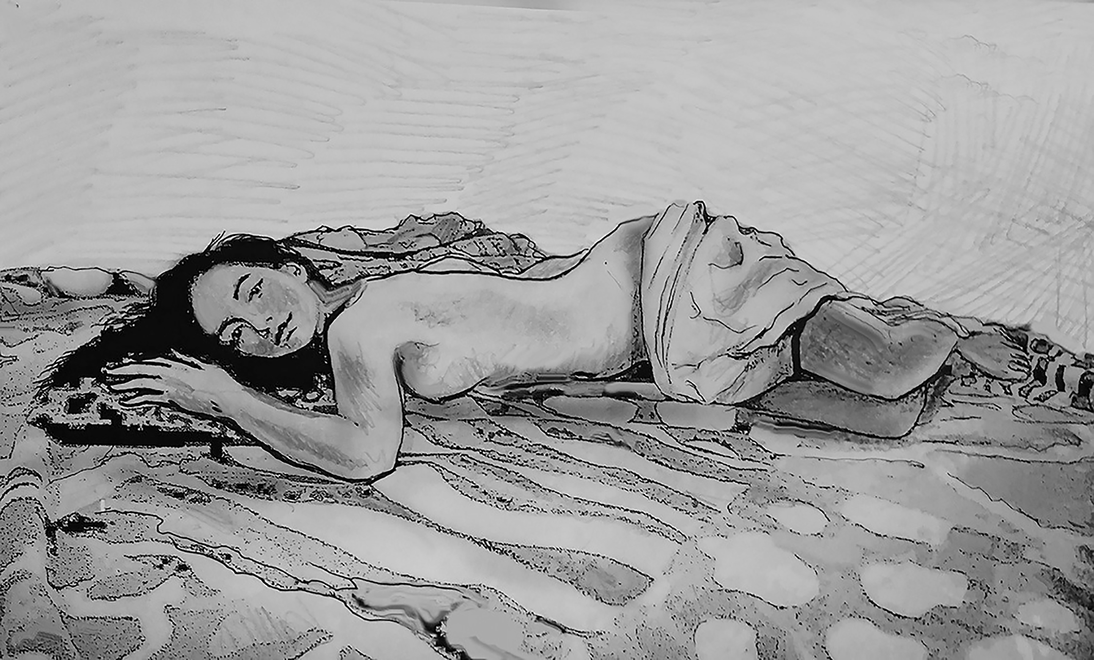 Manu acostada (tinta y lápiz)