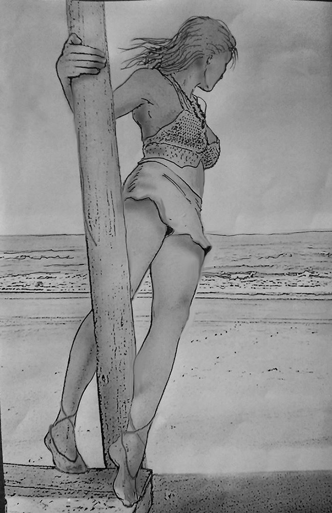 Boceto para la mujer hormiga (El Archipiélago de las Medusas). Lápiz.