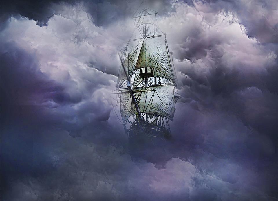Barca zarpando (El Archipiélago de las Medusas). Tintas.