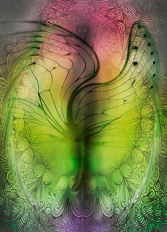 Eva y la serpiente (Retratos sin tiempo). Acrílico y digitalización.
