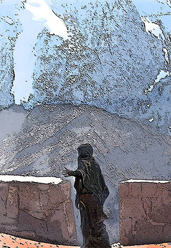 Sirio oteando el horizonte (Expediciones insólitas). Tinta y carbonilla.