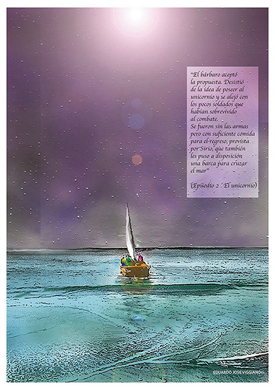 Sirio navegando (El Archipiélago de las Medusas). Acrílico y tintas.