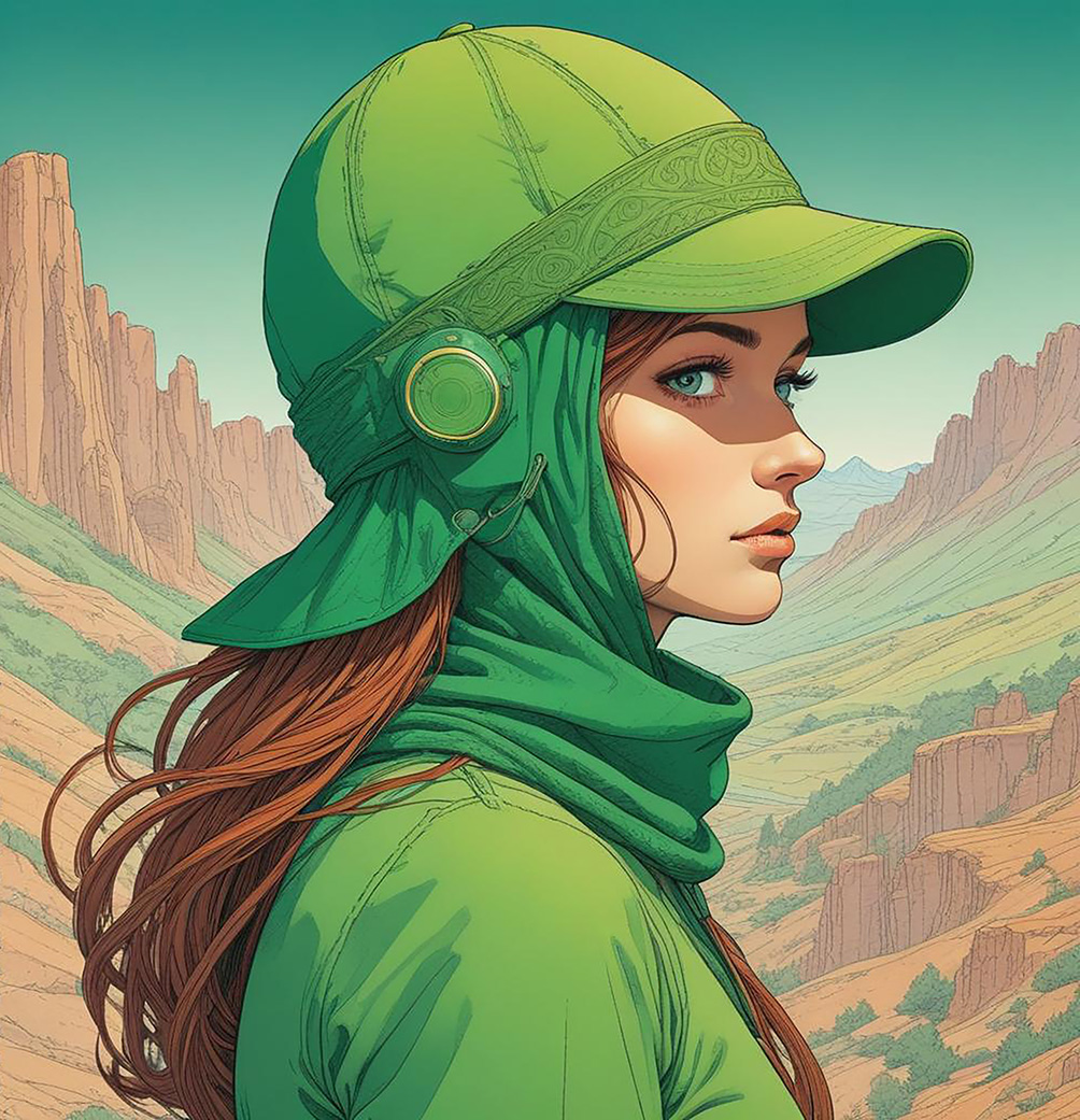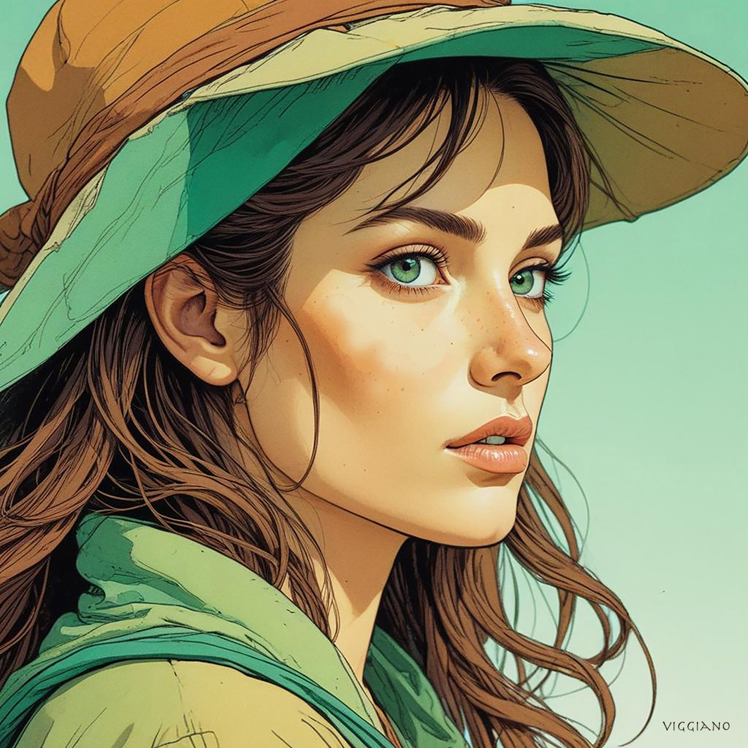 Dafne con sombrero (tinta sobre papel y coloreado digital)