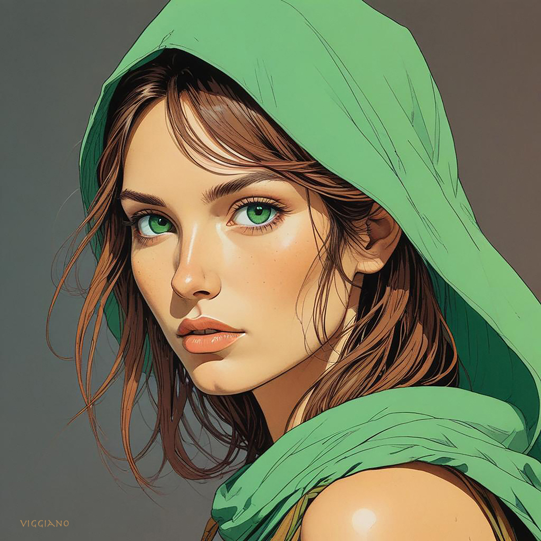 Dafne con capa (tinta sobre papel y coloreado digital)