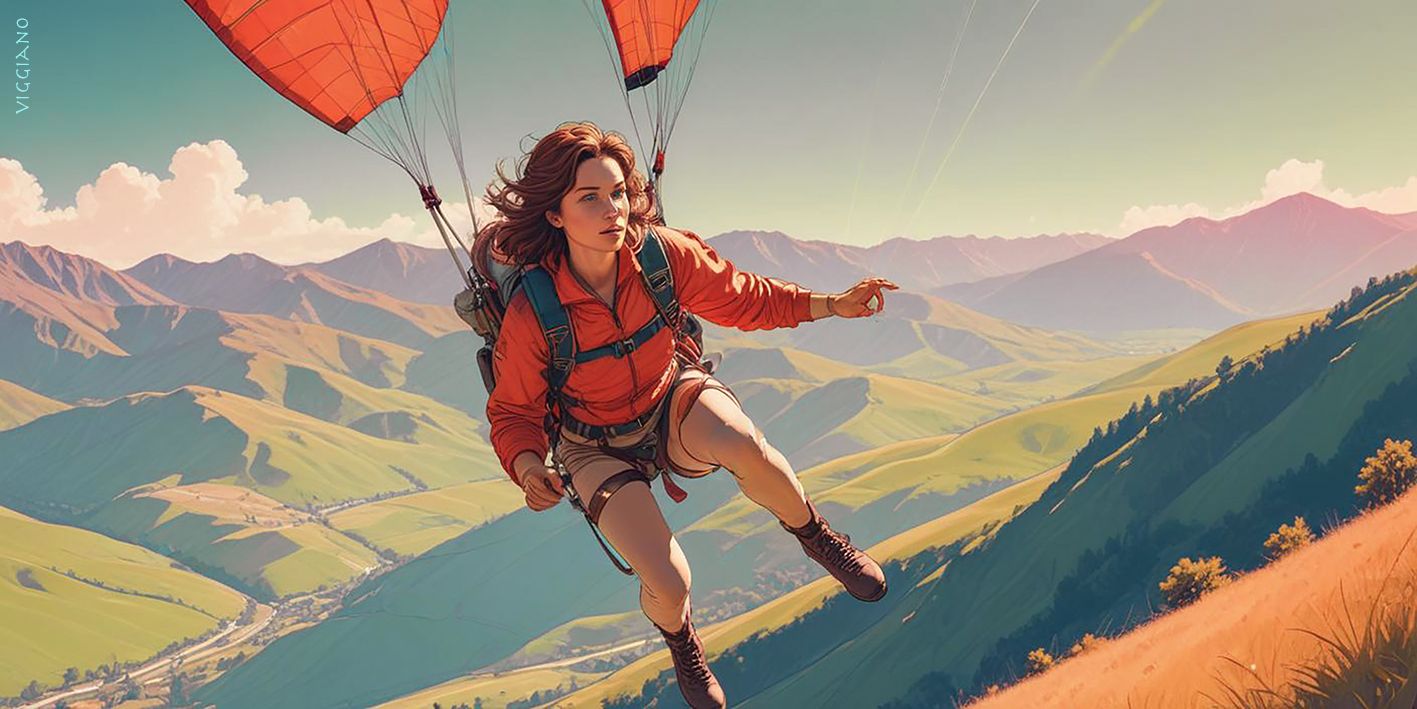 Dafne en parapente (tinta sobre papel y coloreado digital)