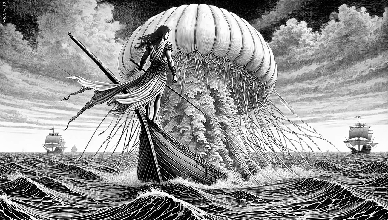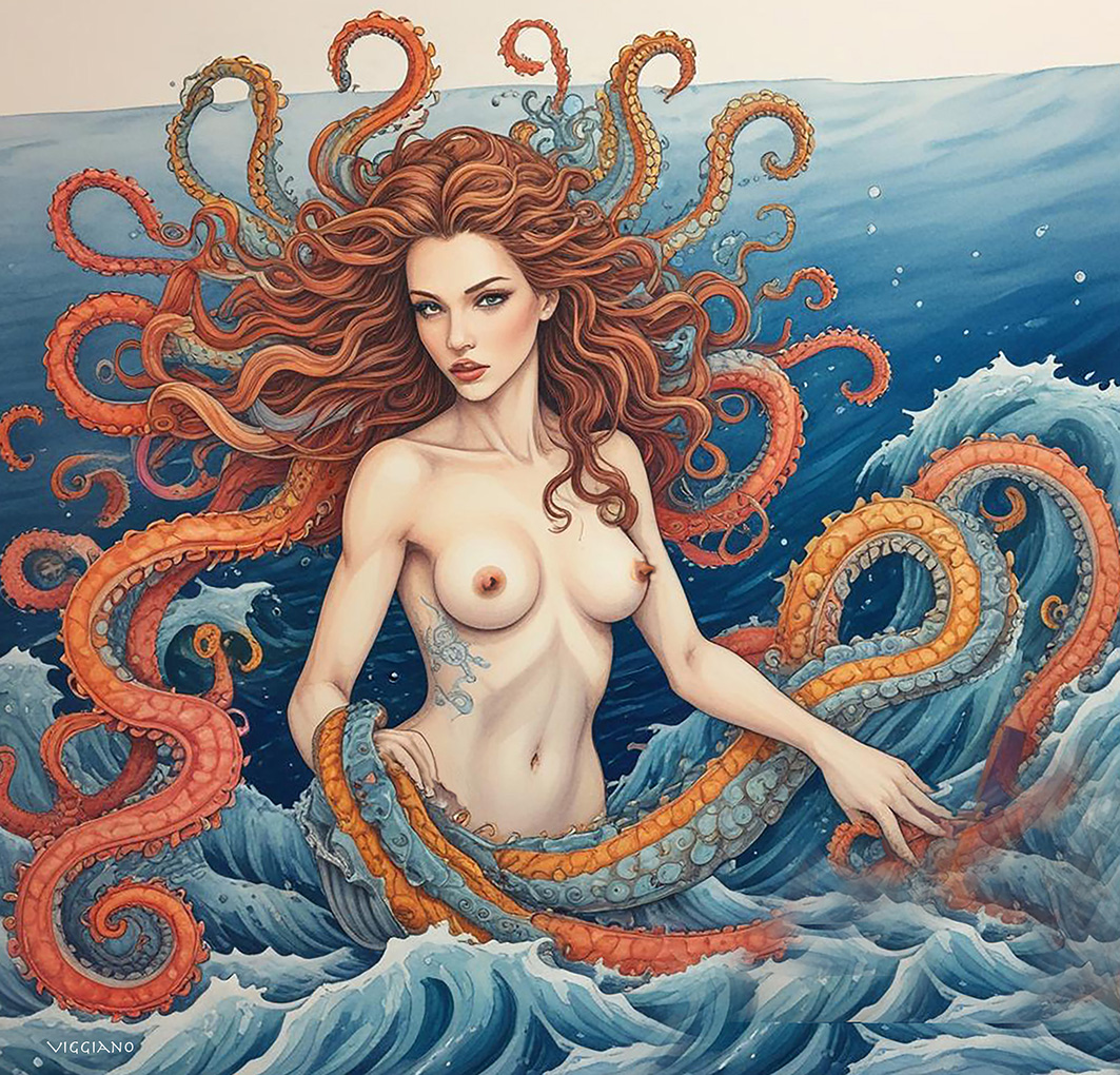 La mujer pulpo 1 (estilógrafo sobre papel y coloreado digital)
