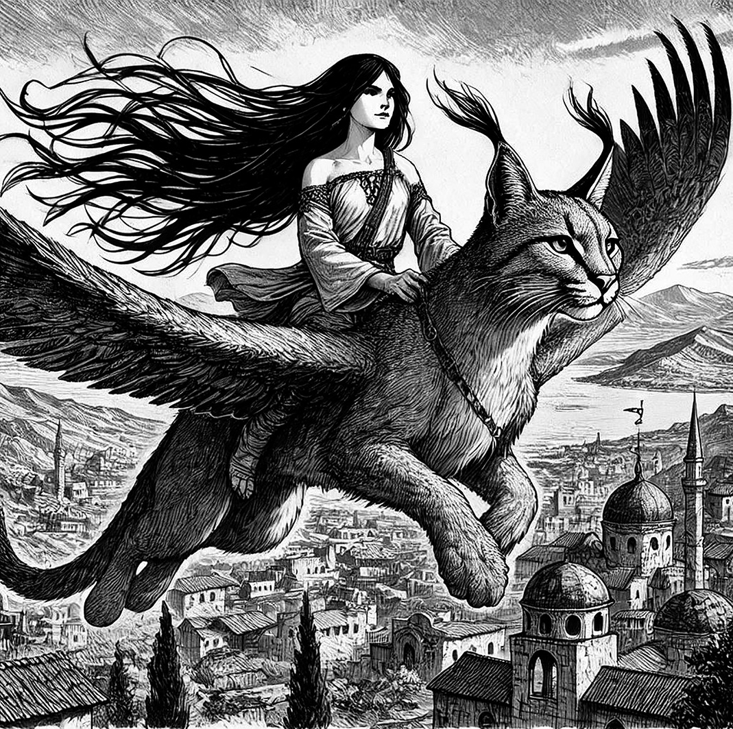 Landach, el caracal mágico (estilógrafo sobre papel)