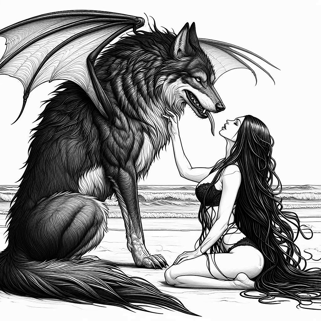 Cáberic, el lobo alado (estilógrafo sobre papel y color digital)