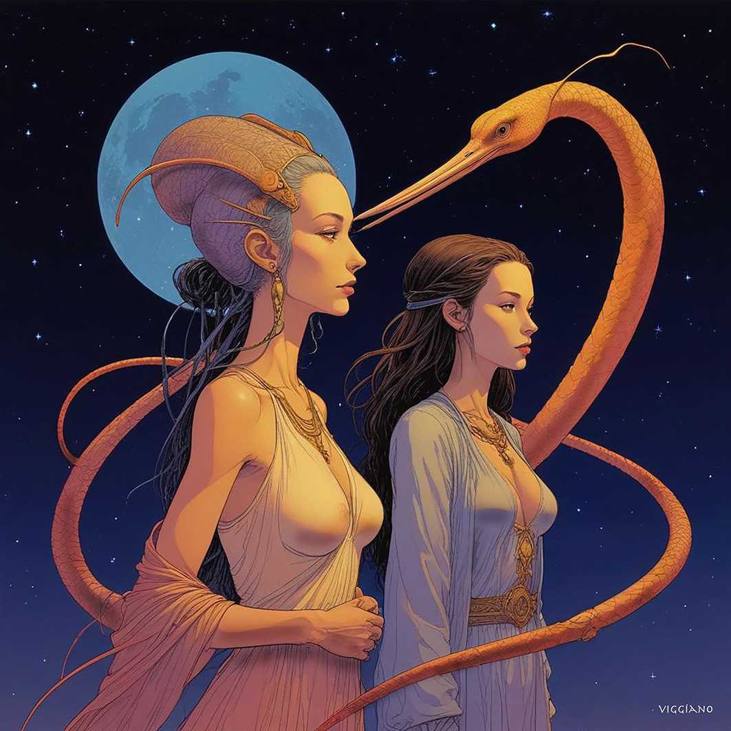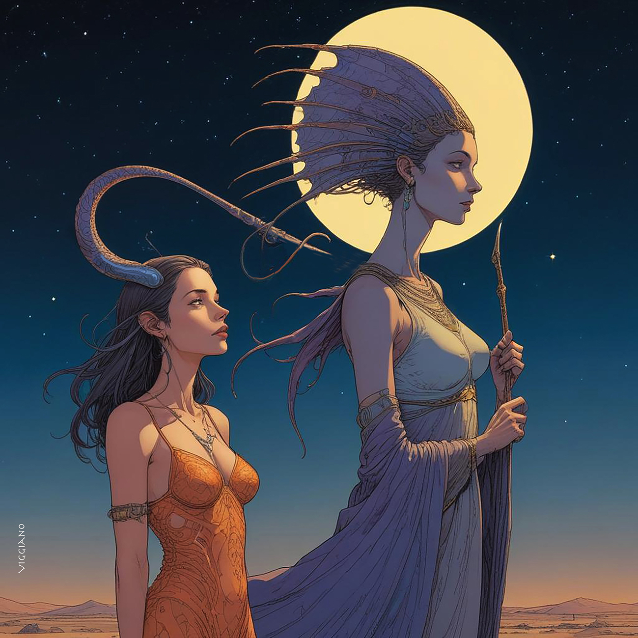Las amalteas – versión 1 (estilógrafo sobre papel y coloreado digital)