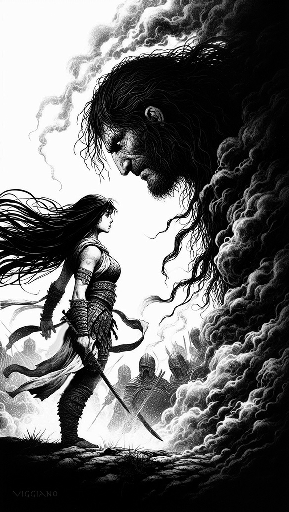 Cáberic y Sirio en la playa (tinta sobre papel)