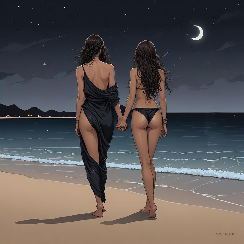 Huellas nocturnas – serie erótica (estilógrafo sobre papel y coloreado digital)