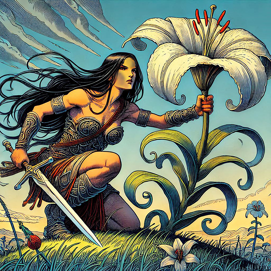 El campo de los lirios gigantes (estilógrafo sobre papel y coloreado digital)