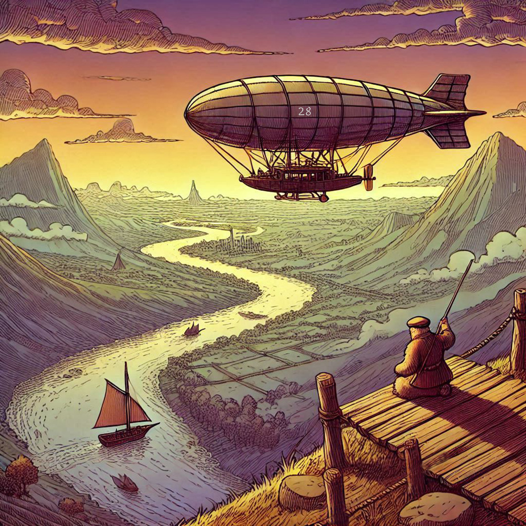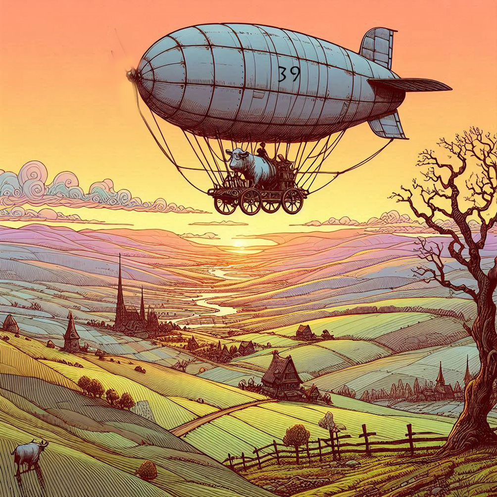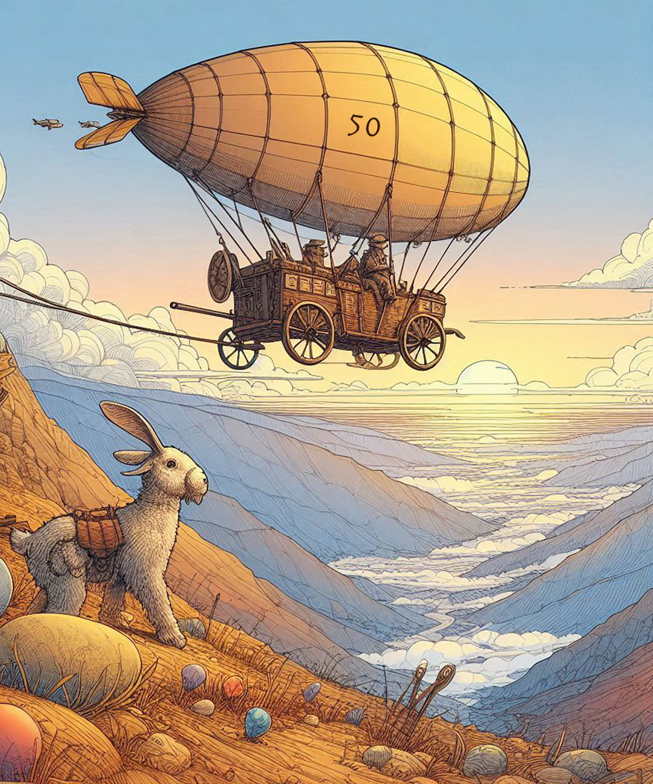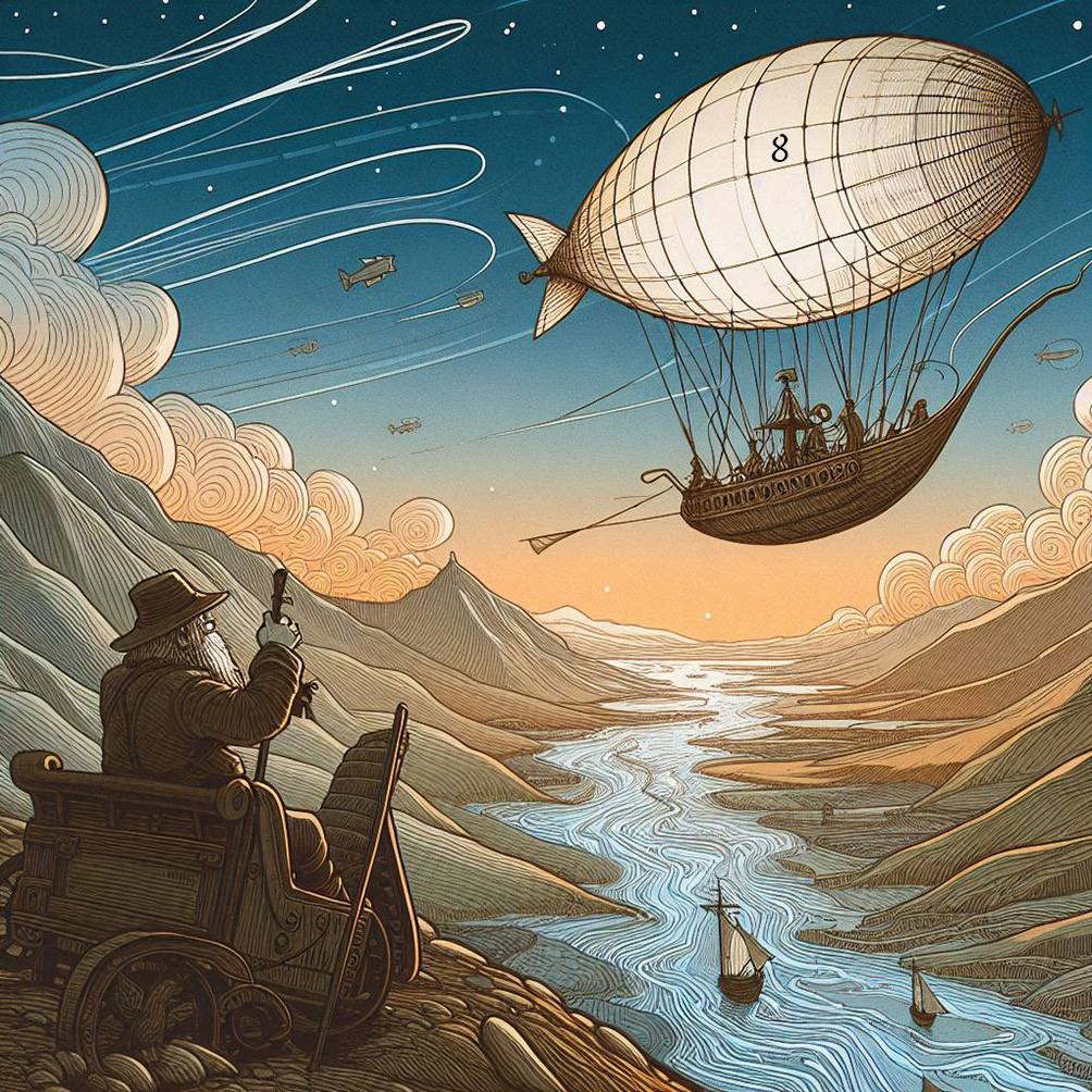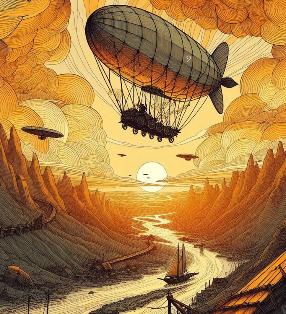 La carrera de las nubes (tinta sobre papel y retoque digital)