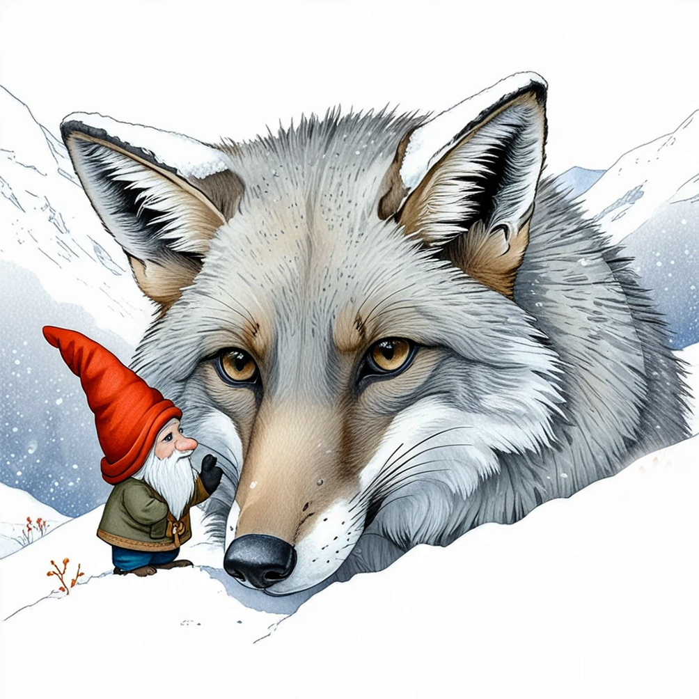 Escena de «Los gnomos y los zorros» (lápiz acuarelable y retoque digital)