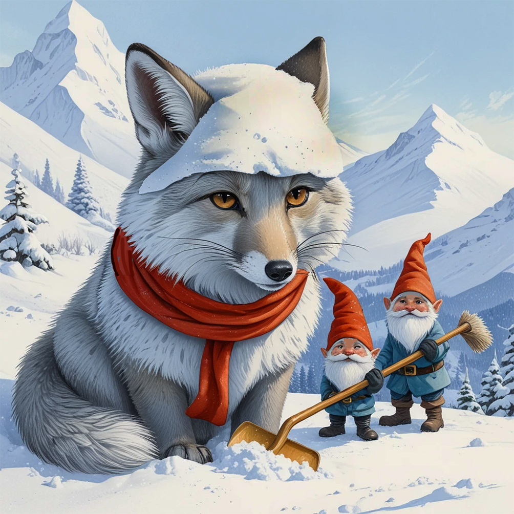 Escena de «Los gnomos y los zorros» (estilógrafo sobre papel y coloreado digital)