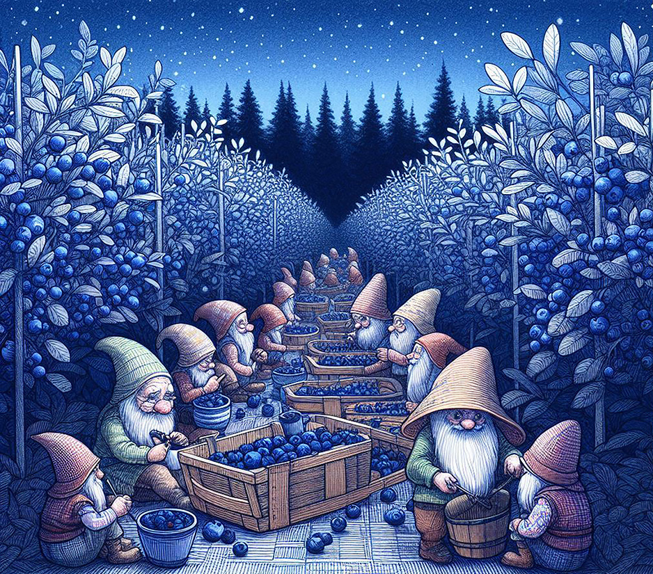 «La cosecha de arándanos» – cuento (lápiz de color y retoque digital)