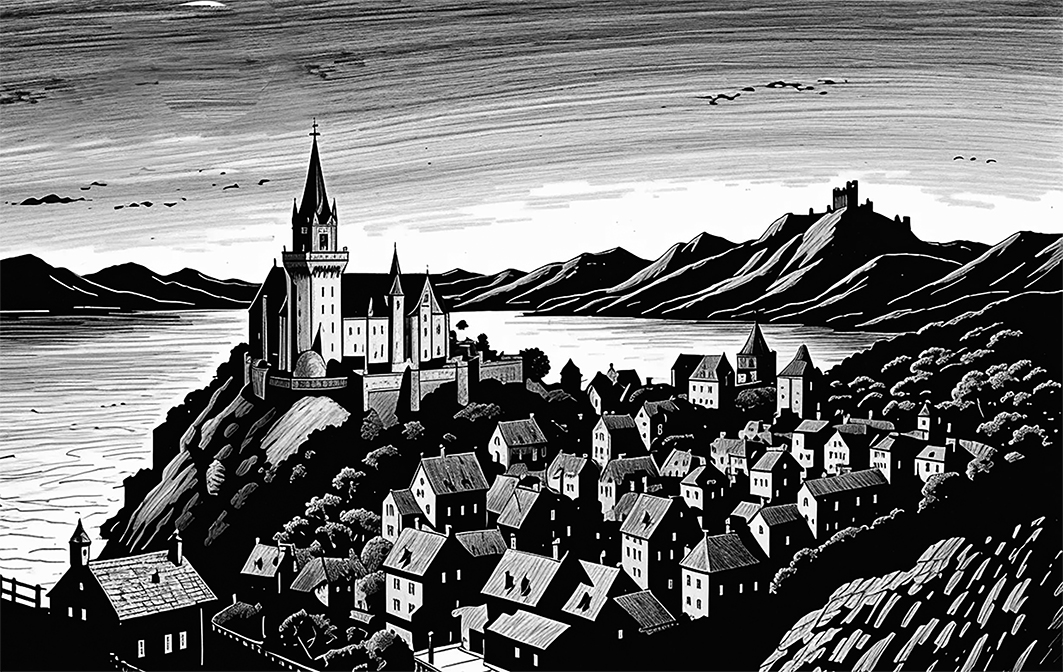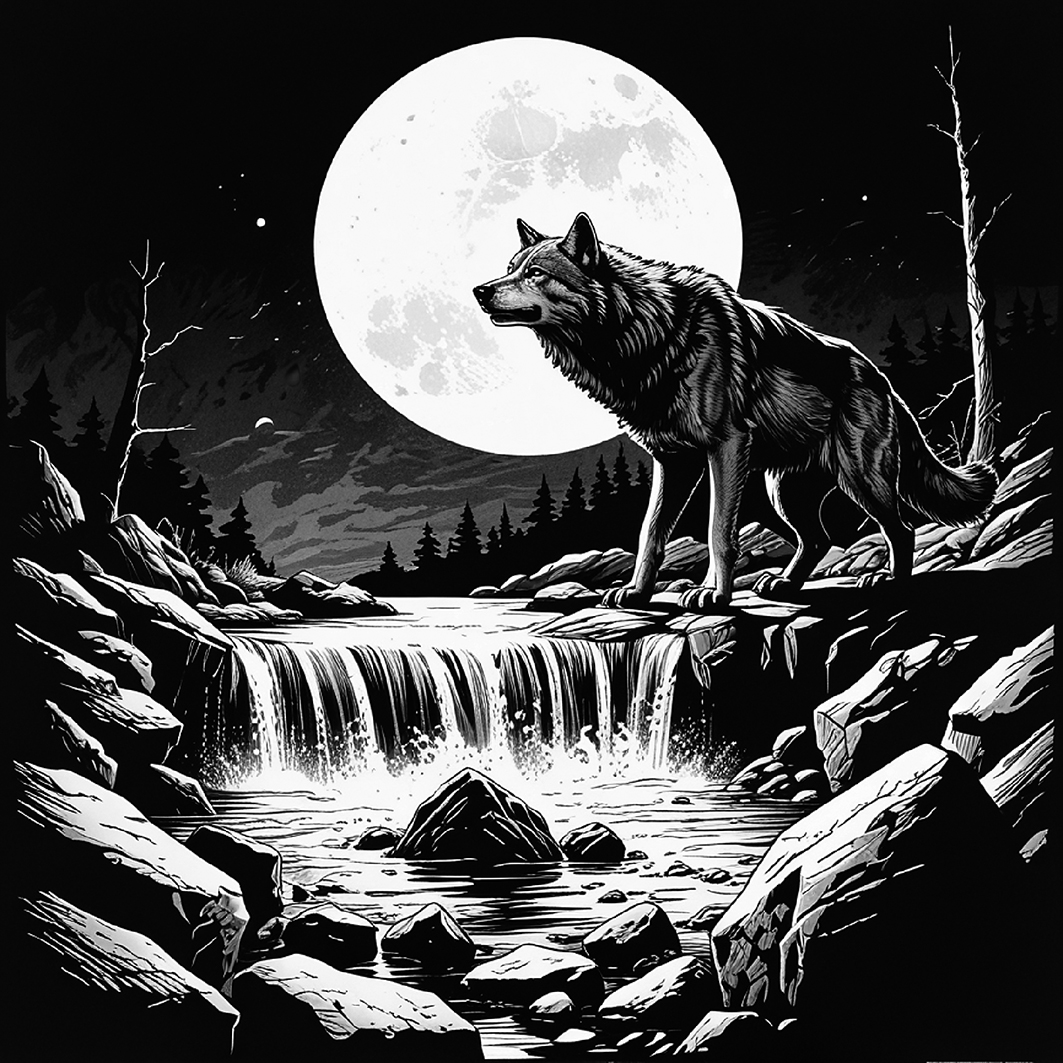 Viñeta de «Tierra de lobos» (tinta sobre papel)